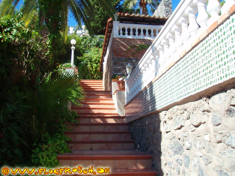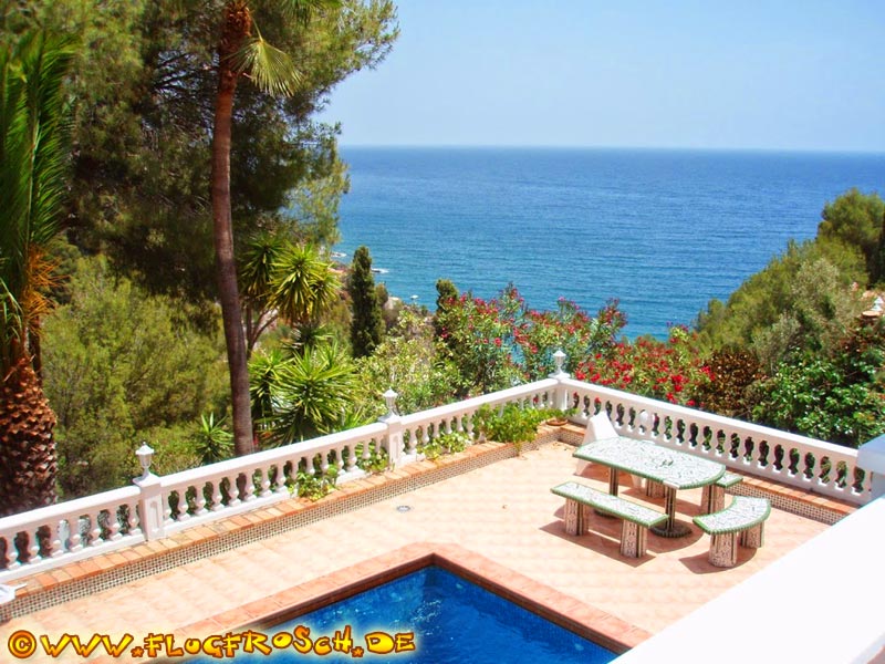Villa Georgie is a beautiful detached holiday rental in Andalusia with lots of privacy, fantastic sea views and private pool, just barely 400 meters from the beach of the beautiful little bay "Playa de Cotobro" in Almuñécar on the Costa Tropical in Andalusia, the eastern part of the Costa del Sol. Here you can swim, enjoy the easy walking distance to charming beach bars and sit with a paella and a glass of red wine with your feet in the warm sand. The lively town center and the picturesque old town are within walking distance. Fantastic Views From the villa you can enjoy a fantastic view of the nearby Mediterranean Sea and the famous landmark Almuñécars, the at night illuminated "Peñon del Santo", the sacred rock. Here you will find a remarkable park and a series of rocks of dramatic beauty that jut into the Mediterranean and offer a spectacular view of the old town, the Arab citadel, the Andalusian coast and the Mediterranean Sea. Please note: The staircase to the house winds beautifully through the large garden. The many steps mean, however, that the villa is unfortunately not suitable for wheelchair users and handicapped guests. We also ask our guests not to smoke in the house, but only outdoors. Also, pets unfortunately not allowed. Comfortable Facilities Villa Georgie has recently been refurbished in bright & fresh Nordic style with large windows that give a lot of light. It is situated on a 1000 m² large private plot, so that you can feel completely undisturbed here. There are 7 rooms on about 200 m² living area and 2 floors. There are 3 modern bedrooms with comfortable double beds plus 1 apartment for another 2 to 3 guests, 2 bathrooms, one with tub, one with shower, a well equipped eat-in kitchen and a lounge with a comfortable sofa area, 42 "cable TV, DVD player and open fireplace for cozy holiday evenings. The seperate apartment is fully equipped as a small apartment with attached bathroom, private TV with satellite reception and private kitchenette and has direct access to the pool and to the pool terrace. New: There is now an air conditioning for cooling and heating in the three bedrooms and in the living room of the main house, so you can keep the rooms here pleasantly year-round.. Spacious Pool and Outdoor Area The villa has about 300 m² terraces on 2 levels and a beautifully landscaped garden area of about 500 m², with palms, pines and tropical flowers, of course with corresponding garden and patio furniture, a ping-pong table and a BBQ for outdoor dining with view to the blue sea. The entire property is available to you, as well as the private, underwater illuminated swimming pool of 10 x 4 meters, of course, for your sole, very private use. Even if you choose Villa Georgie for e.g. only 2 guests, you can enjoy complete privacy here. Also from the swimming pool you have fantastic sea views. The pool available year-round and here, at the warmest spot of the European continent, you can often enjoy a bath in the pool during the "winter months". Almuñécar in Andalusia is famous for its 320 sunny days a year! And if it gets cooler, additional electric heaters and the cozy fireplace are available. Beach, Restaurants, Getting Here To the next beach it is less than 400 meters, so a walk of perhaps 5 minutes. To the next supermarket or restaurant you need about 10 minutes. Almuñécar offers restaurants for all tastes and budgets! The delicious tapas are served here free to a glass of wine and you can try almost every kitchen of the world. There are countless places with Spanish specialties and delicious, freshly caught fish. There is also a large selection of Chinese, Italian, Greek, Arabic, German, British, Scandinavian and the well-known American restaurants and and and ... And from Malaga Airport it is only about 1 hour drive to Villa Georgie, along the new coastal highway, or the picturesque old national road, along the sea. parking spaces for your car can be found right in front of the house! |