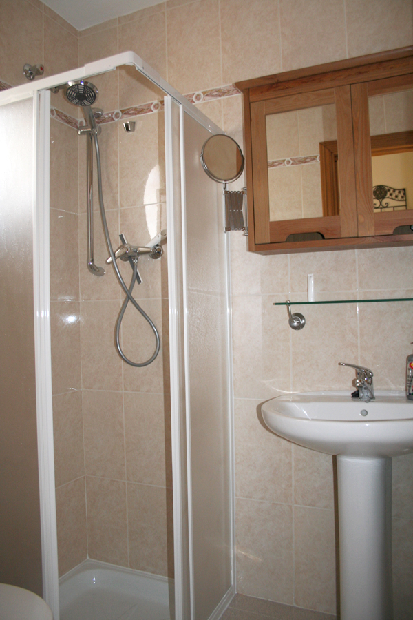 Our bathroom is located on 1st floor together with the 3 bedrooms. It has a bathtub with shower, a toilet, a bidet and sink with mirror cabinet. The guests toilet with shower is located on ground floor.