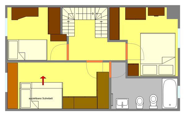 If you wanted to talk about jewelry at a holiday rental, we would certainly have to call our kitchen very early. Apart from the fact that it comes from this millennium and from a brand manufacturer, we can say with peace of conscience that it basically leaves nothing to be desired. A modern stove with ceramic hob, extractor hood with exhaust air to the outside, separate oven, microwave, fridge, freezer, dishwasher, toaster, coffee machine, egg and kettle ..... it's all there. The kitchen has a sufficient floor space, so that even 2 guests have good space to work. Directly at the window there is also a seating area for 3 guests.