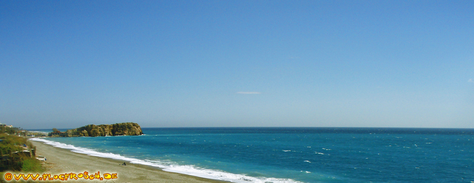 The very beautiful and attractive holiday apartment El Oasis del Mar is full of colors and decorated very trendy, fresh and stylish. El Oasis del Mar has an exceptional location as it's almost on the sand, right on the beach Playa de la Guardia in Salobreña, Andalusia. La Guardia is a very quiet and still a bit "wild" beach. From September to July, it is almost empty, and thus a wonderful place for those seeking tranquility. Nevertheless, up to the lively tourist centers of Salobreña and Almuñecar with countless shops, supermarkets, bars and restaurants it is just a few minutes by car. The apartment has 2 bedrooms. The Habitación Roja, the 'red bedroom' has a double bed and Habitación Pistacho, the 'green bedroom', has 2 single beds. There are two new bathrooms, one with bath and toilet and the other with shower and toilet. The brand new kitchen is a little jewel - very modern and colorful, and directly connected to the living room. If you look down from the double bedroom and the living you are "on the beach". The 2 panoramics pics are done from the livingroom. The views are spectacular! La Guardia Beach is surrounded by sugar cane plantations (very few left in Europe) and in a very rural, genuine and almost unspoiled environment – an exceptional spot for nice and peaceful walks along the beach or in the middle of the plantations. In the months of July and August, many locals from Granada come to visit this part of the coast in Andalusia. Two bars on the beach offer refreshments, and there is also a small shop named "Casi de todo", which means 'almost everything'. The picturesque small town of Salobreña has about 10,000 inhabitants and is located about 5 minutes drive from Monte de los Almendros, on a hill with a majestic, at night illuminated castle on the top. Along Salobreña's promenade there are numerous restaurants and tapas bars for enjoying the culinary specialities of the region. A rock rising from the Mediterranean separates the most important beaches from Salobreña: La Playa del Peñón, in the more settled area with many shops, restaurants and services, and the Playa the de la Guardia, a more extensive but wilder beach between tropical cultivations and the sea. Many beautiful hidden bays invite to diving and sun bathing. You'll find your "own" within a few minutes. |