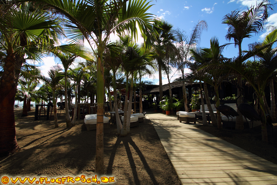 Hammocks, a lounge area, shady pergolas, sun loungers, parasols and four-poster beds are spread out around the pool and under the palms and offer great relaxation.